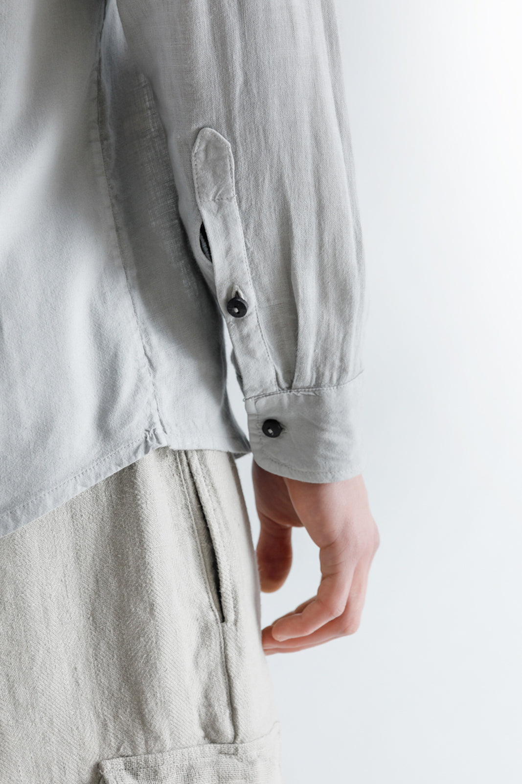 - Long sleeves with buttoned barrel cuffs.
