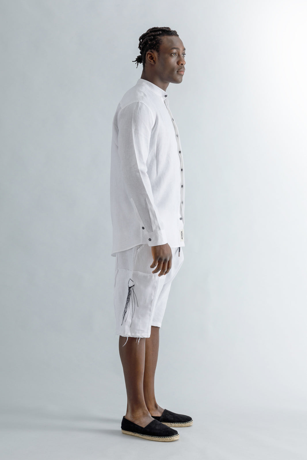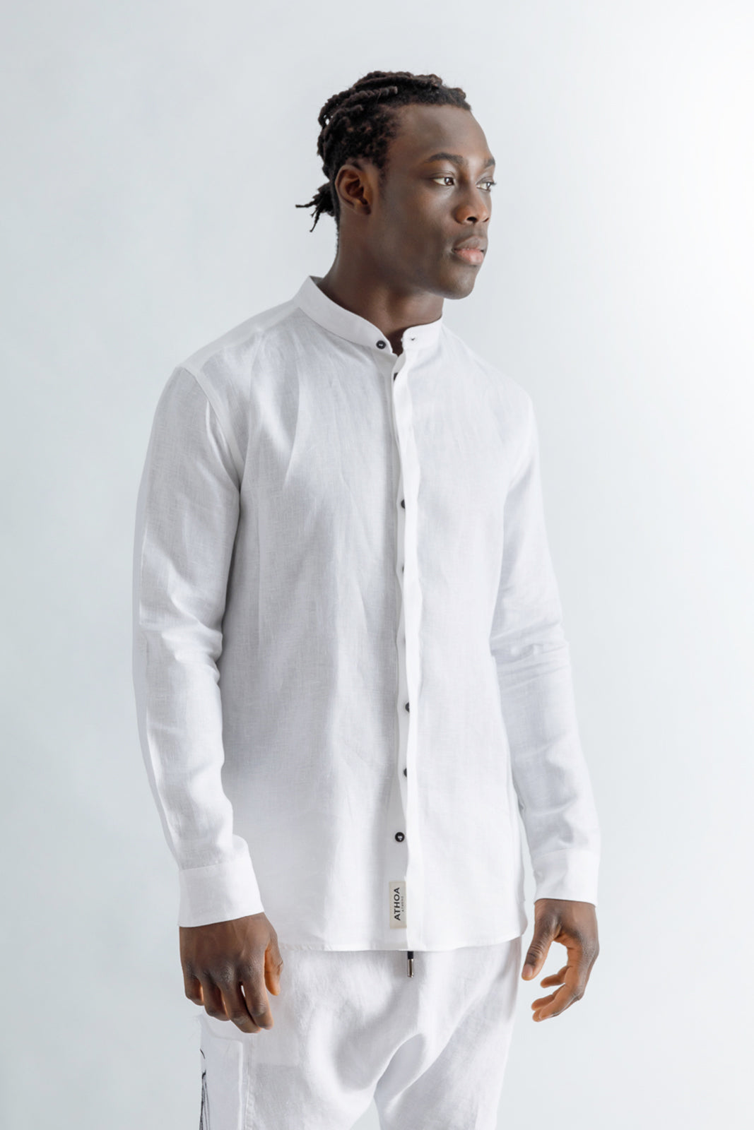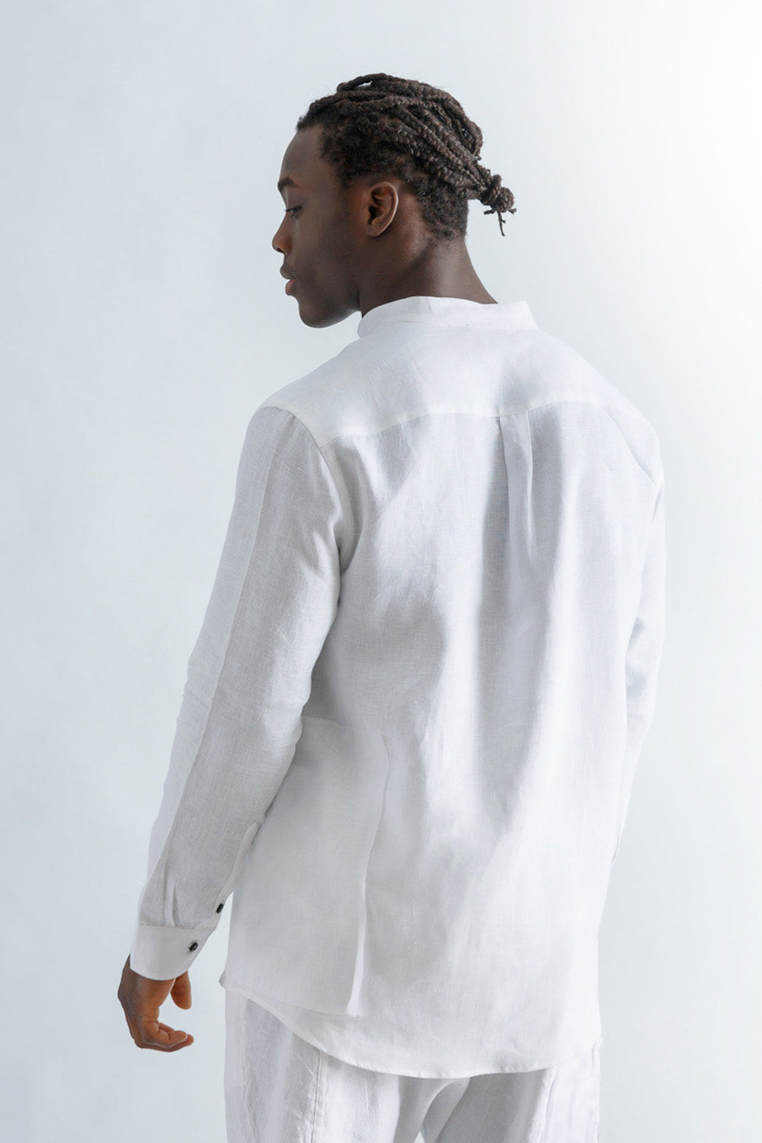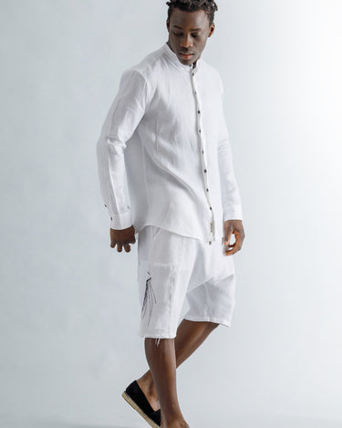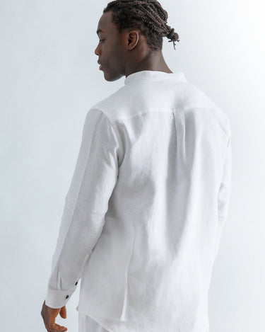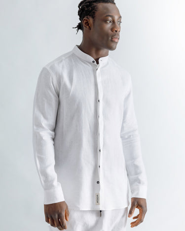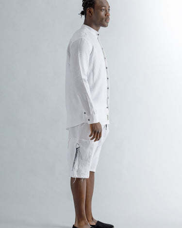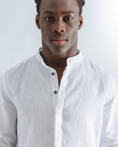 Linen Mao Collar Covered Placket Shirt