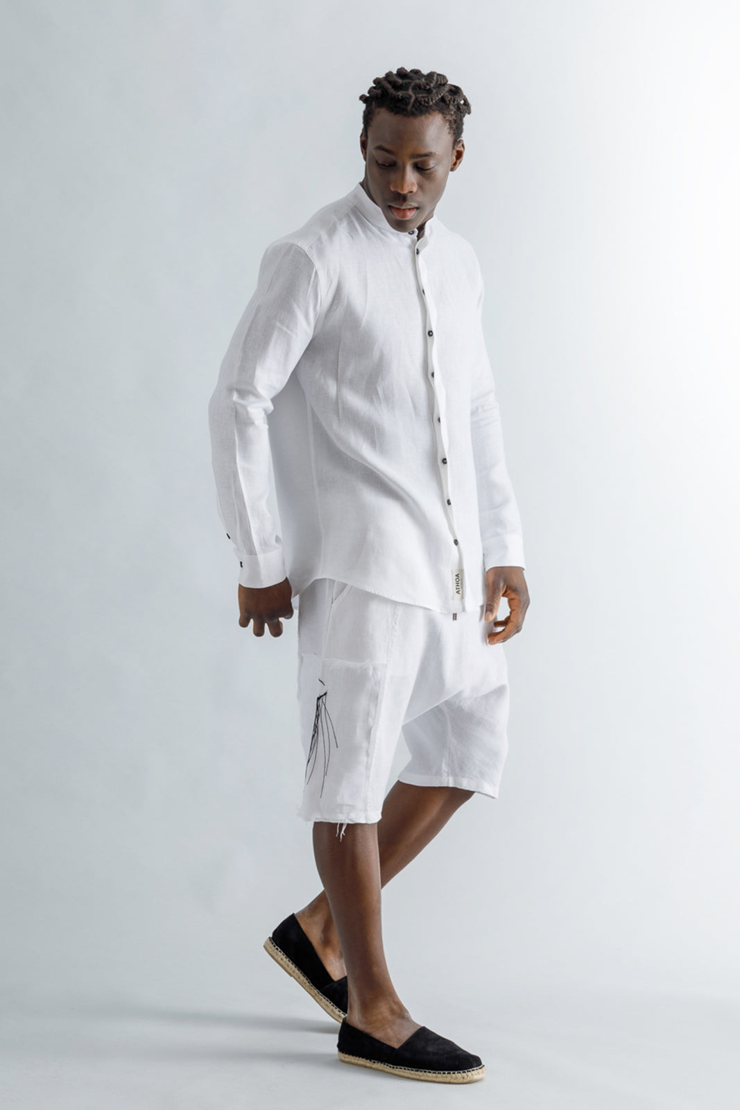Crafted in Greece using lightweight Flax linen , finished with olive wood buttons.