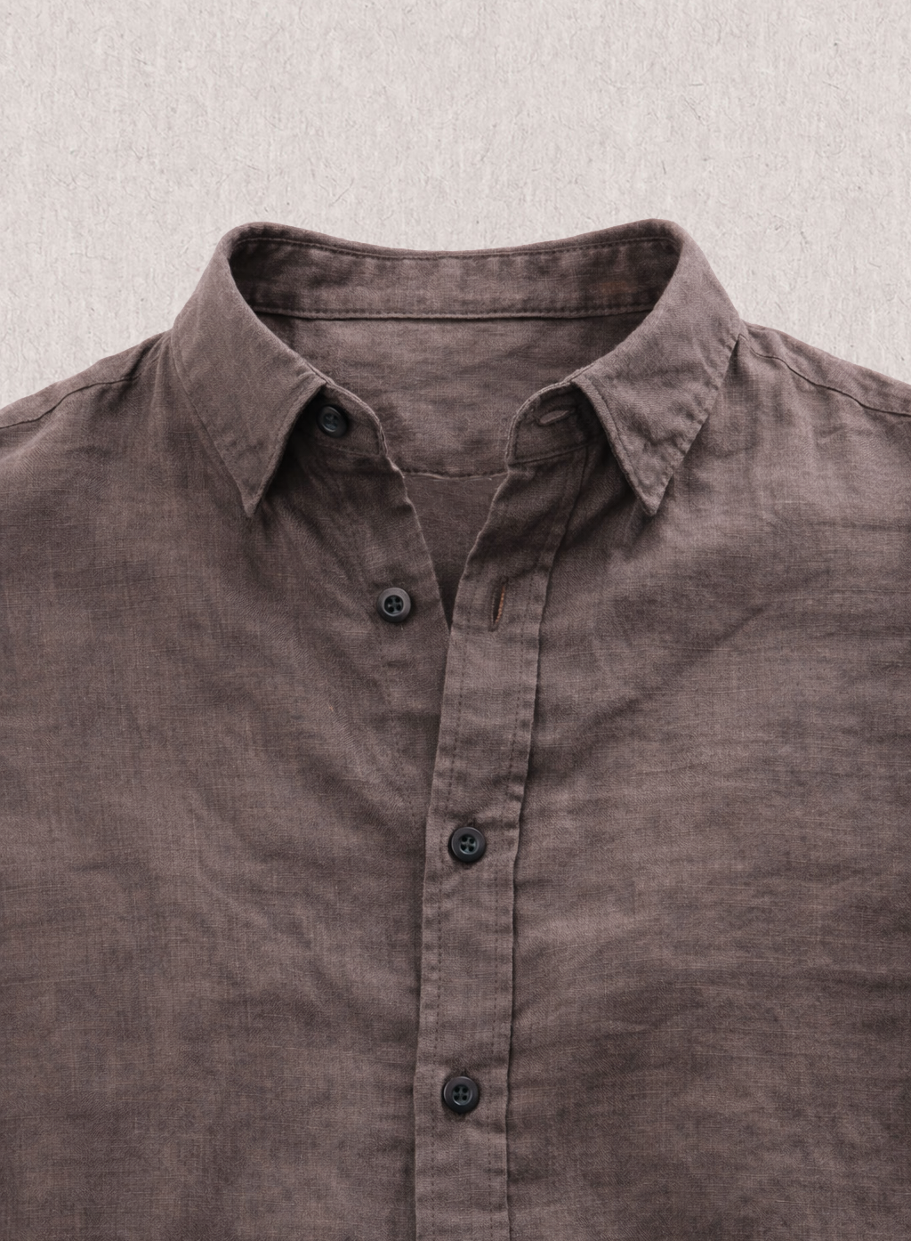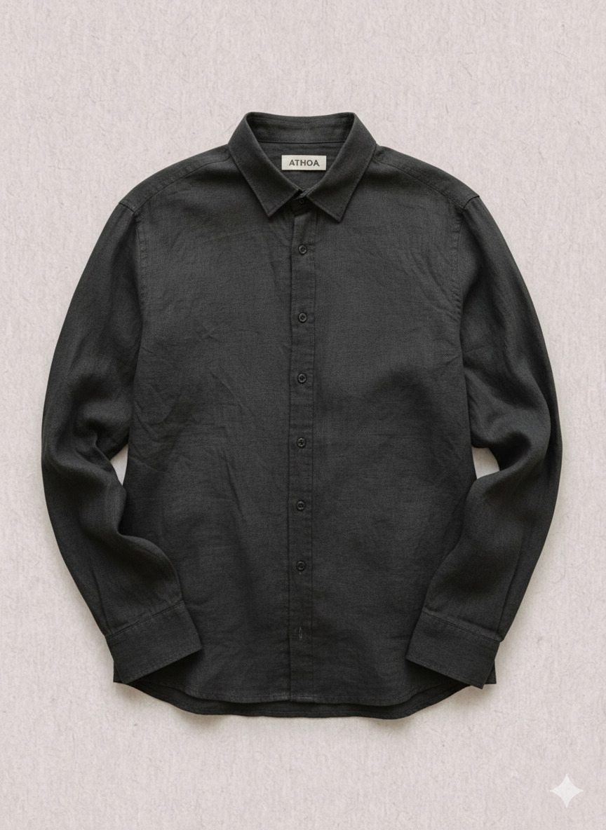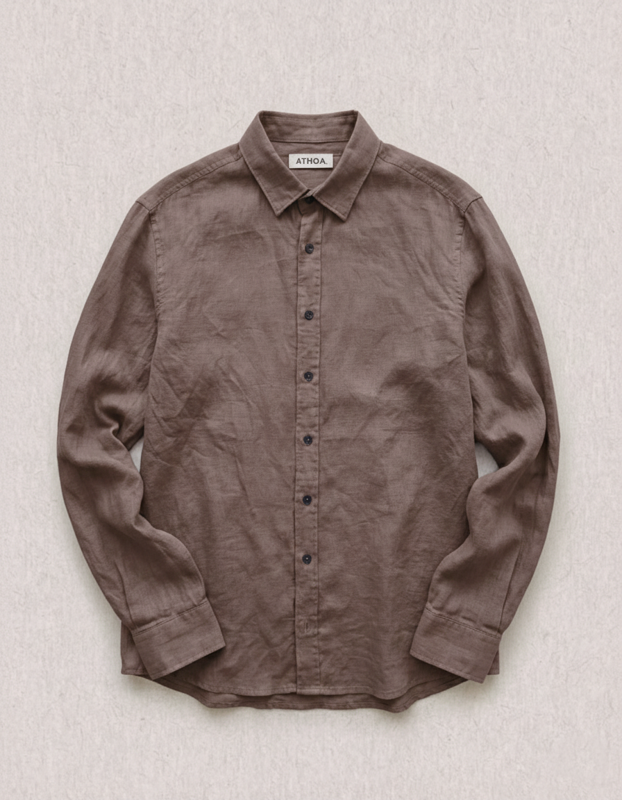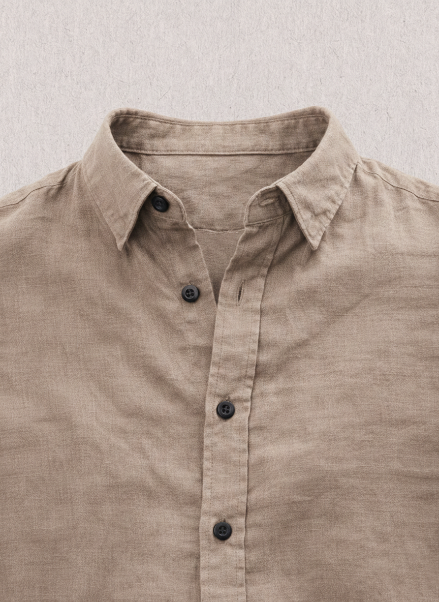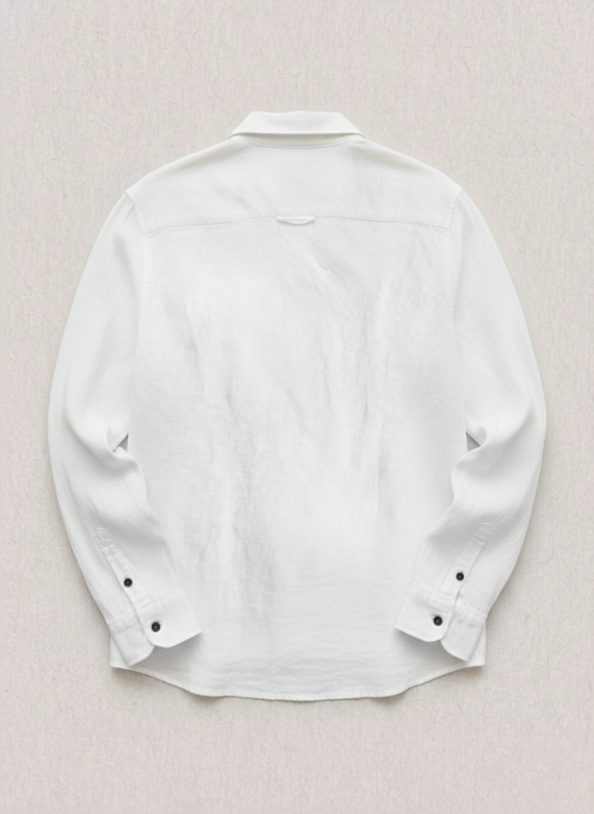 A classic reinvented for the modern wardrobe, this button-down linen shirt features a traditional pointed collar and a clean, structured finish. It offers a sharp look without sacrificing the relaxed comfort essential for sun-drenched days.