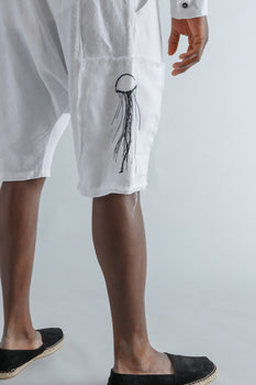 White Linen Bermuda Shorts + Embroidery